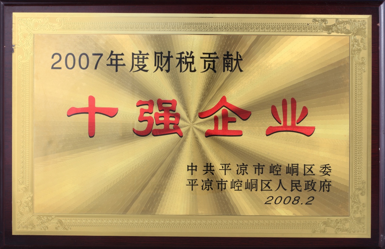 2007年平?jīng)鍪嗅轻紖^(qū)財稅貢獻十強企業(yè)
