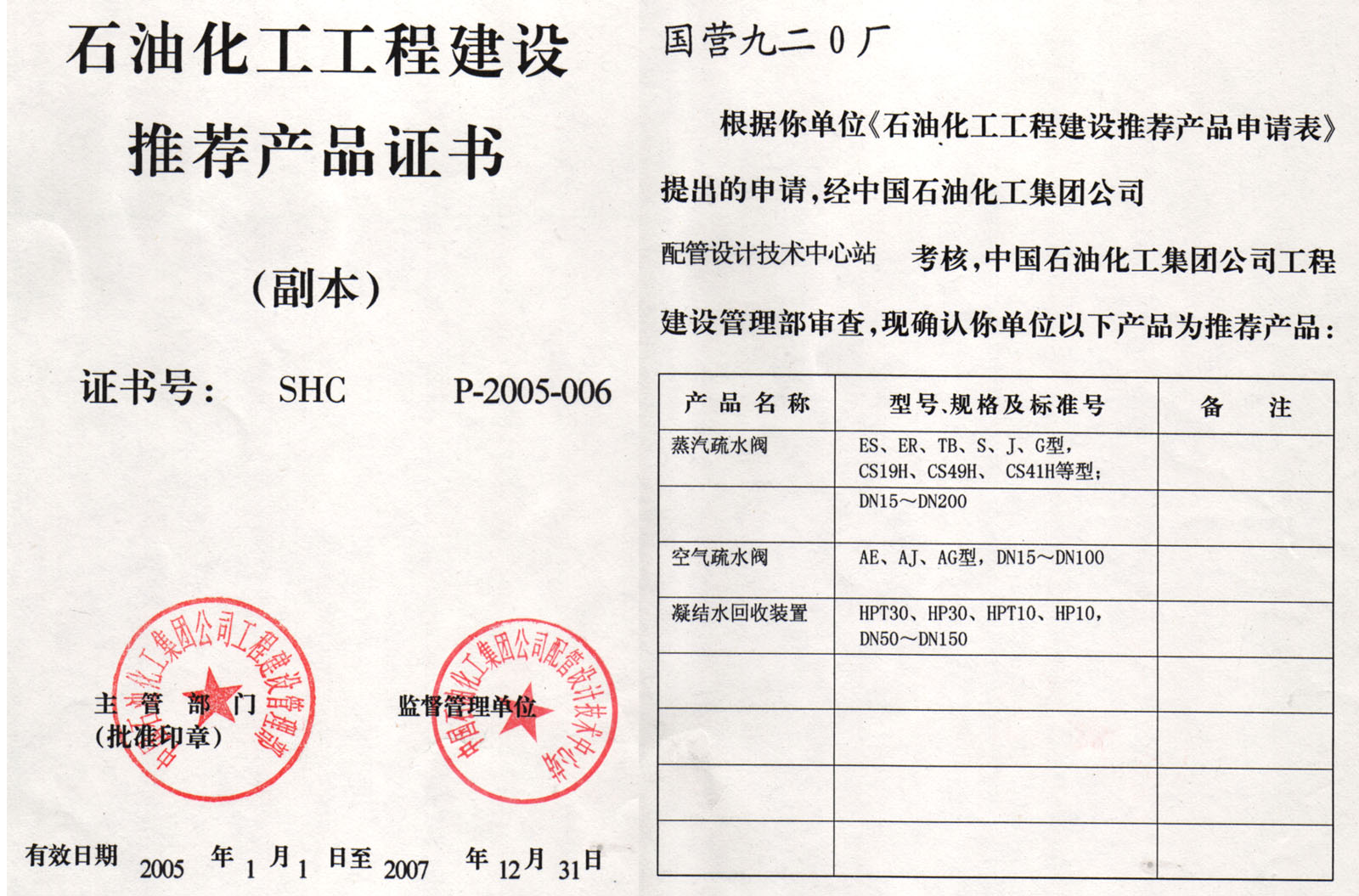 2005年中國石化推薦產(chǎn)品證書(副本)
